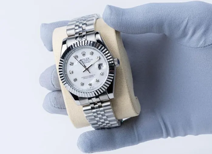 ساعة Rolex ديت جست أبيض الفاخرة